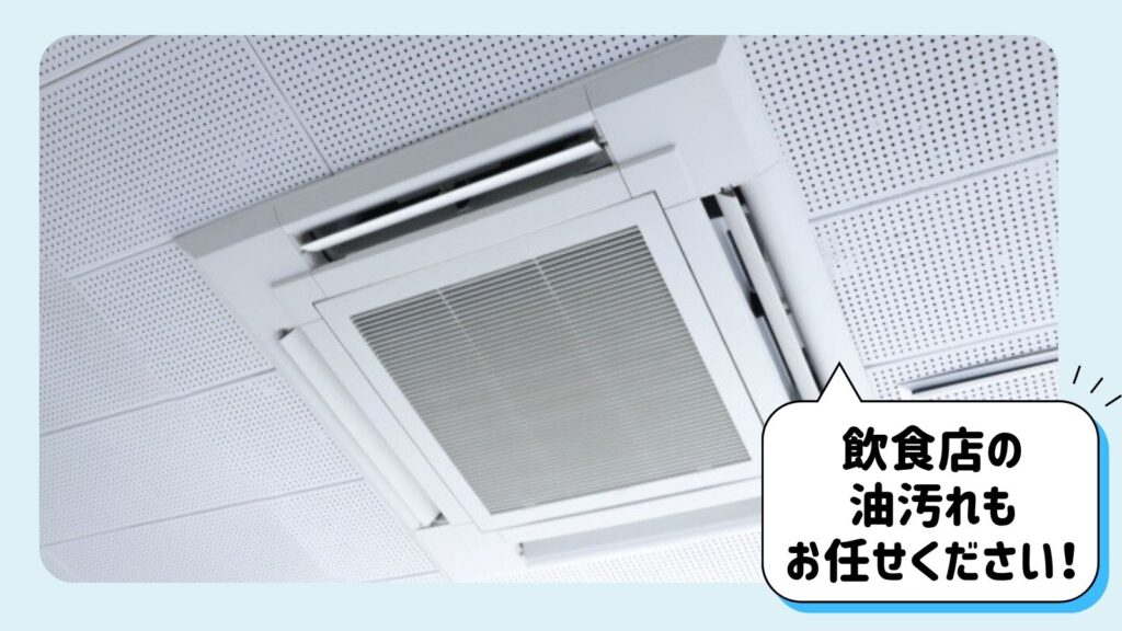 カビ・ホコリ・油汚れを高圧洗浄で徹底除去し、洗浄後は動作確認と清掃箇所のチェックを行います。作業時間は家庭用で約1〜2時間、業務用で2〜3時間が目安です。